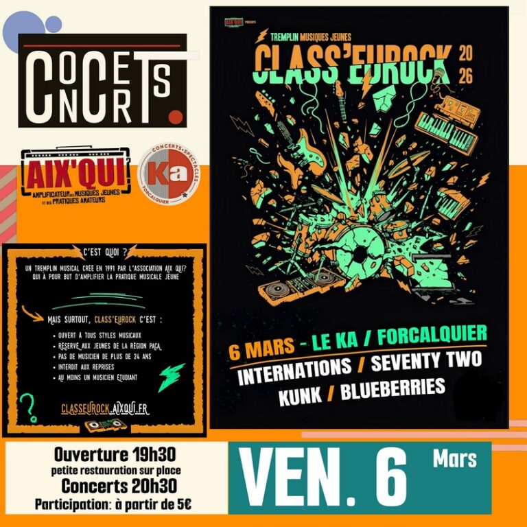 CLASSEUROCK. Jeunes groupes des Alpes de Haute Provence, jeunes musiciens. nes de 23 ans max, c’est aussi pour vous que l’Association Aix’Qui? organise depuis bientôt 35 ans ce fameux tremplin. Classeurock dont sont issus Dagoba, Hyphen Hyphen, Soma, Deluxe et…