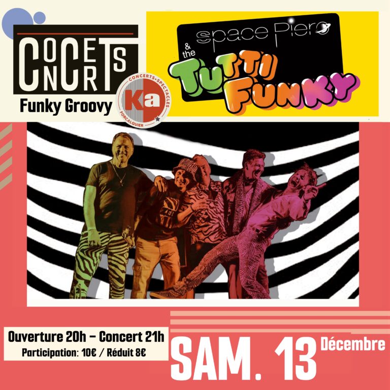 SPACE PIERO & The TuTTi Funky Ouverture 20h – Concert 21h – Tarif 10€ / reduit 8€ Space Piero & The TuTTi FunKy est un quintet de funk qui explore à travers ses compositions aux couleurs Funk Rock Psychédéliques l’improvisation…